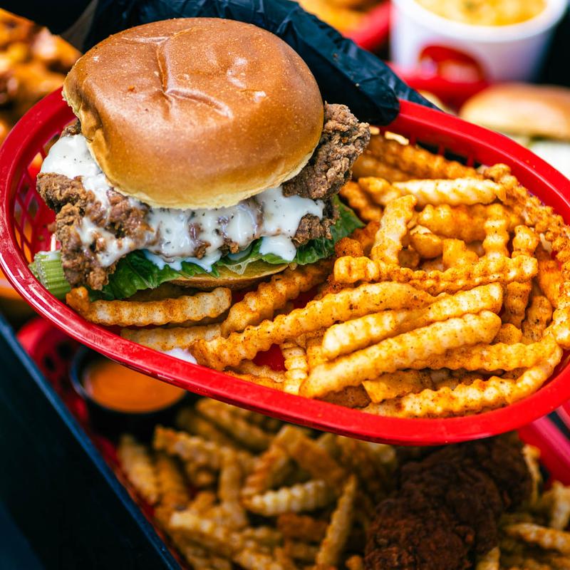 The food was delicious. I recommend getting the tenders over the sandwich. Tenders were juicy and made to perfection. The chicken on the sandwich was small tender strips and dryer with more tendons the coleslaw was only alright. The fries were crisp and good. Overall, the tenders and flavor were great!
